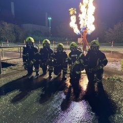 Beim Übungsabend am 10. Oktober 2025 stand daher der richtige Umgang mit einem Gasbrand im Fokus. Mit Hilfe eines Hohlstrahlrohres galt es, die Gasflamme gezielt einzufangen und kontrolliert einzudämmen. Sowohl Mannschaft als auch Gerät wurden bei dieser Übung stark gefordert – die unmittelbar am Brandobjekt auftretenden Temperaturen sind enorm und erfordern höchste Konzentration sowie eine präzise Handhabung der Technik.
