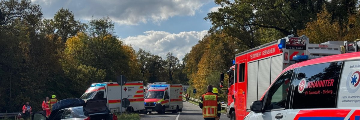 In Höhe der AS Gernsheim waren drei Fahrzeuge in einen Auffahrunfall verwickelt – eines davon überschlug sich infolge der Kollision. Es mussten mehrere verletzte Personen durch den Rettungsdienst versorgt und in umliegende Krankenhäuser verbracht werden.