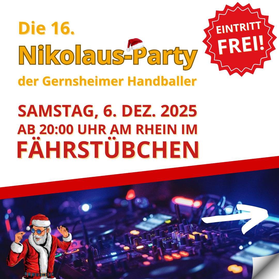 Die Gernsheimer Handballer laden am Samstag, den 6. Dezember 2025 ab 20:00 Uhr zur 16. Nikolaus-Party ins Fährstübchen ein.