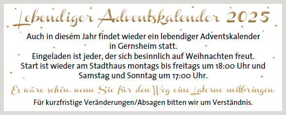 Auch in diesem Jahr findet wieder ein lebendiger Adventskalender in Gernsheim statt.